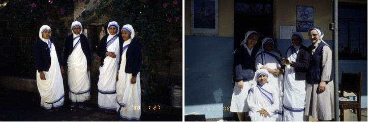 面對眼前的種種苦難,我想用相機把它記錄下來,但卻被修女 禁止。柏梯拉修女說:「我們很感激妳來拜訪探望這些苦難的人。 昔日,也曾有許多位單、作家、記者來訪問我們,有人甚至也會感 動得掉淚。但他們走了之後呢?有的因沾了泰莉莎修女的諾貝爾和 平獎之名,寫了文章大大的出名,有的更壞,還拿了照片去騙取捐 款,大大的賺了錢。他們並沒有帶給我們實質的幫助,反而妨礙了 我們的工作。妳是學生,我們相信妳不會這麼做,我們有我們的立 場和原則,請妳原諒,請不要照相。不過,我們可以給妳兩張以前 我們自己拍的照片。「我感激她們對我的相信與接納。而事實上, 能不能照相已不是那麼重要了,因在我內心我早已照下了這些苦難 。但是我開始厭倦自己是個「拜訪者」的身分,於是我懇求:「我 絕對信守妳們的原則,不拍照。但我可否留在這兒幾天?我儘量的 不妨礙到妳們的工作。」柏梯拉修女說:「當然歡迎,不過我們很 忙,無暇照顧妳,妳就做妳想要做的事吧!」